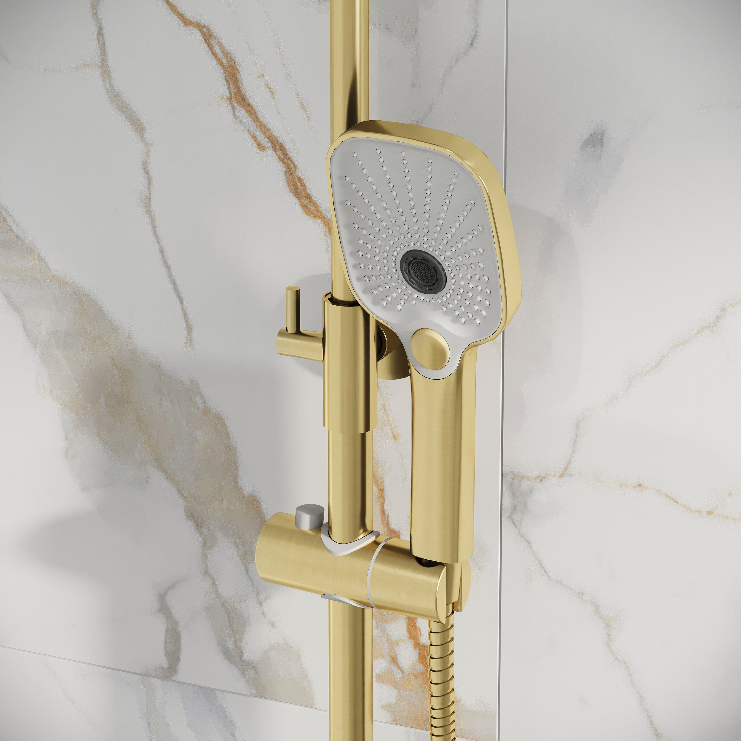 - Верхний душ, лейка, держатель лейки выполнены из прочного АБС- пластика, обеспечивая легкость, безопасность в эксплуатации и уходе