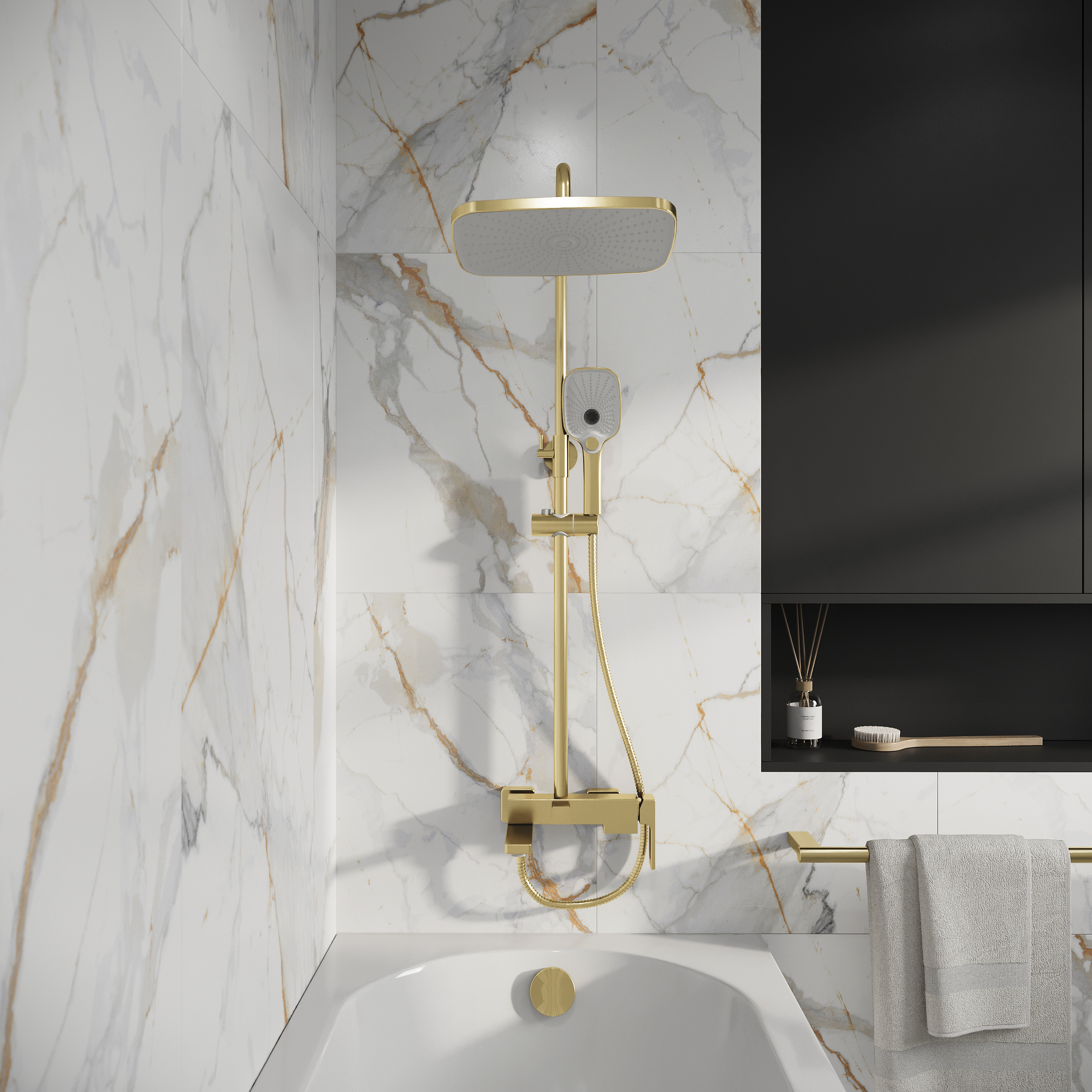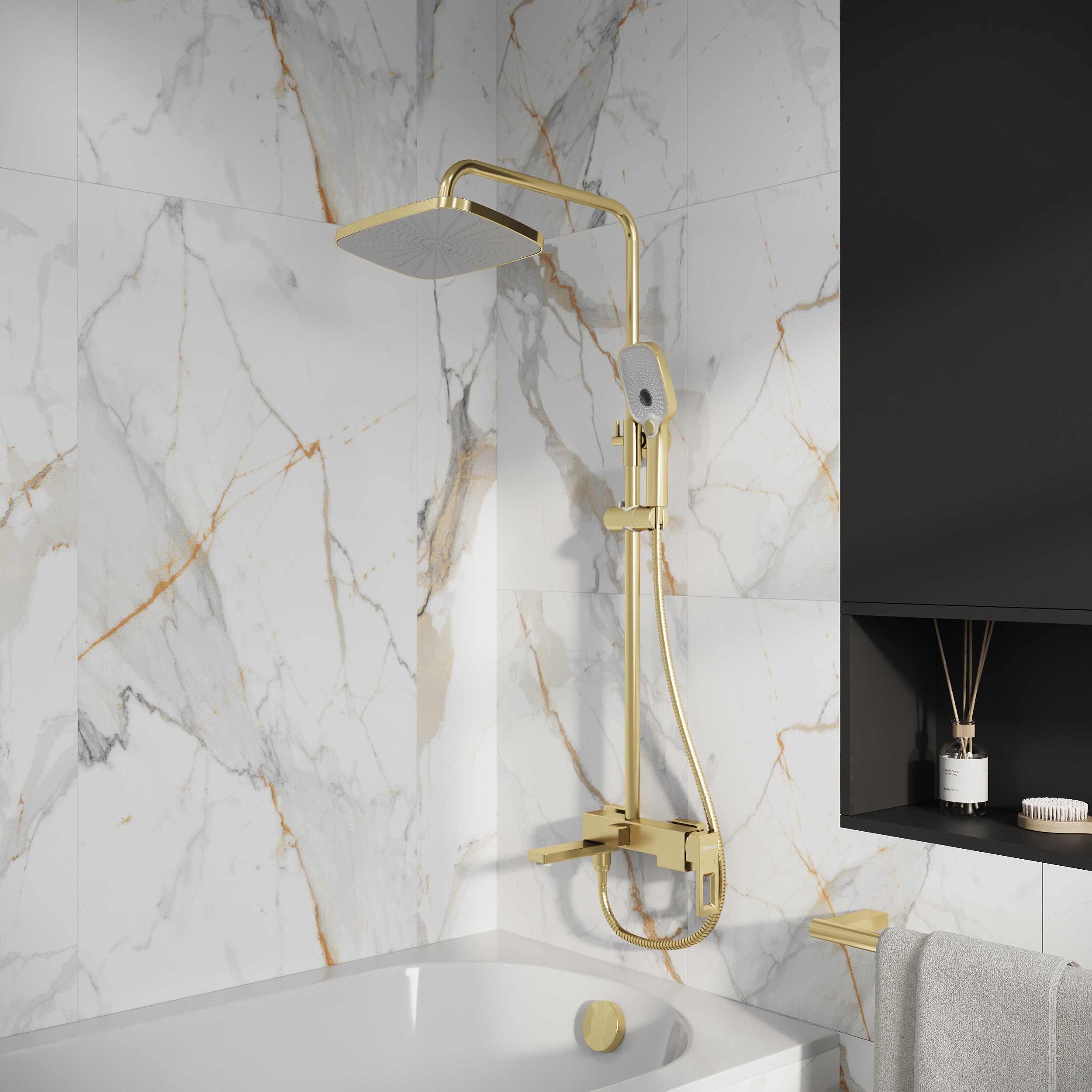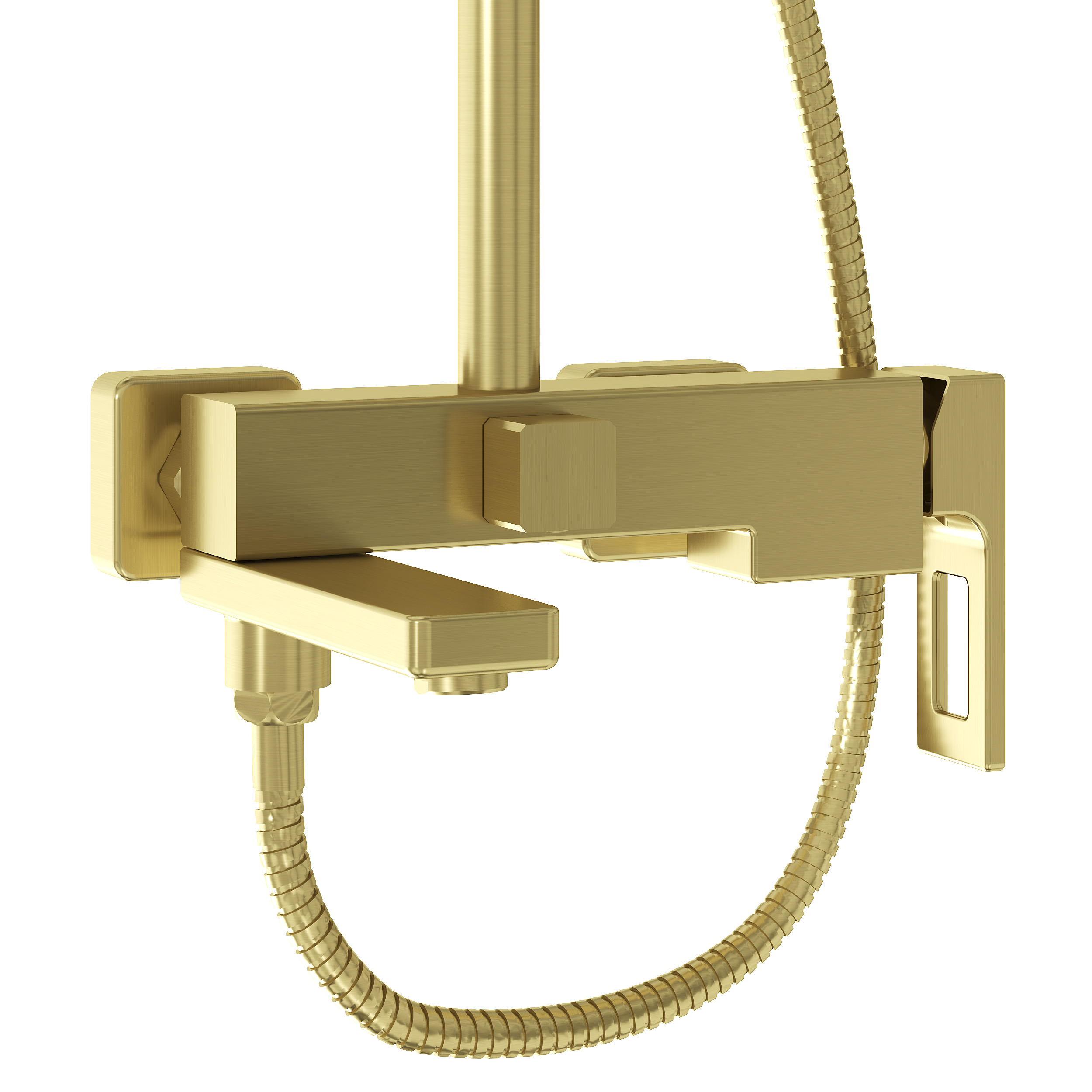 - Телескопическая душевая стойка позволяет изменять высоту до 165 см, что делает использование комфортным для людей разного роста
