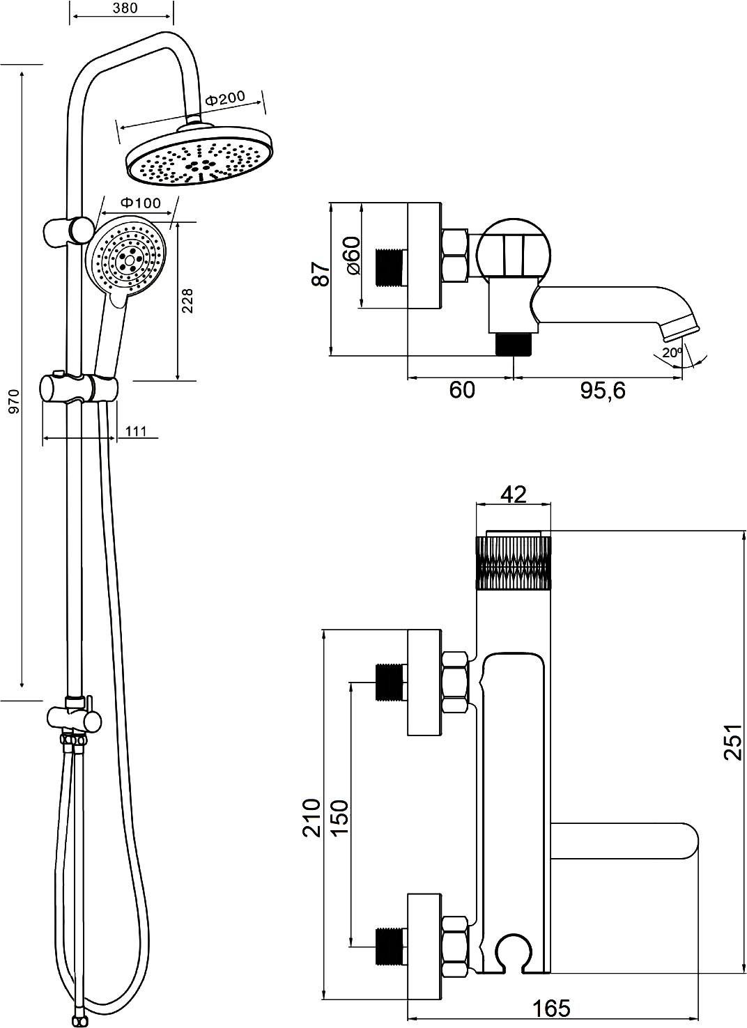 | Размер верхнего душа, см | 20 |