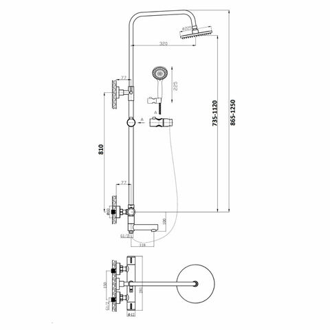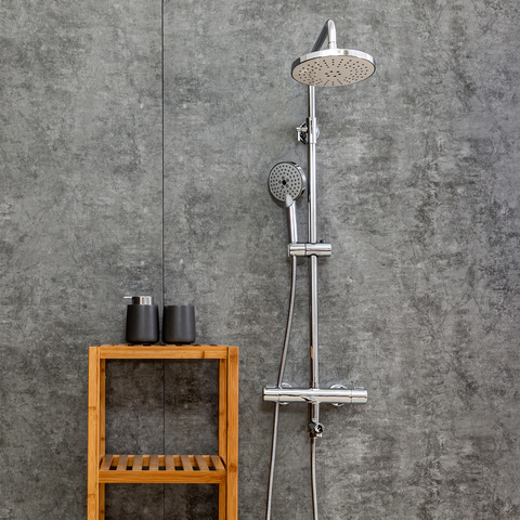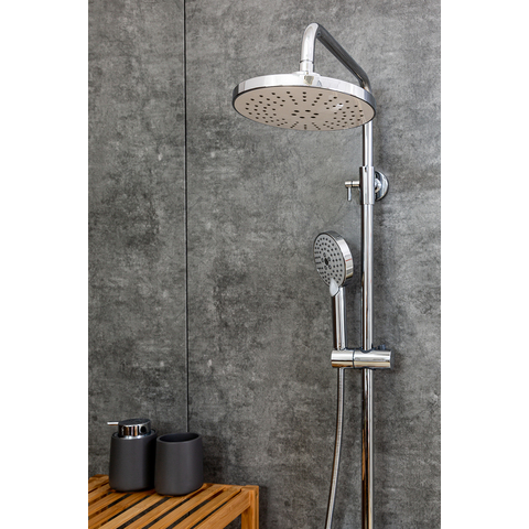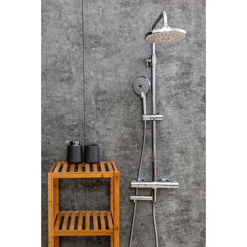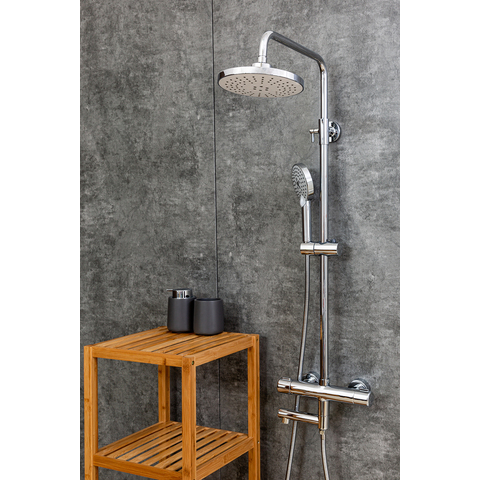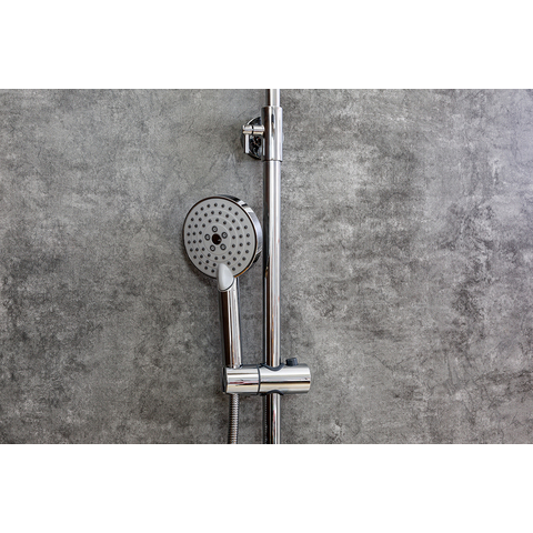 Душевая система Orange Thermo T02-911cr включает смеситель с поворотным изливом, верхний душ и ручную лейку, а также удобный держатель, регулируемый по высоте.