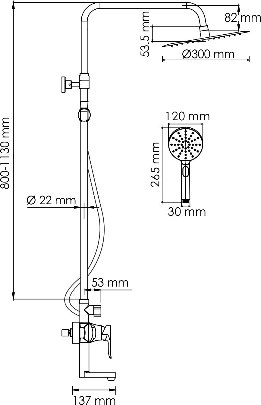 - Регулируемая по высоте стойка для душа Ø 22 мм легко адаптируется под нужды пользователя.