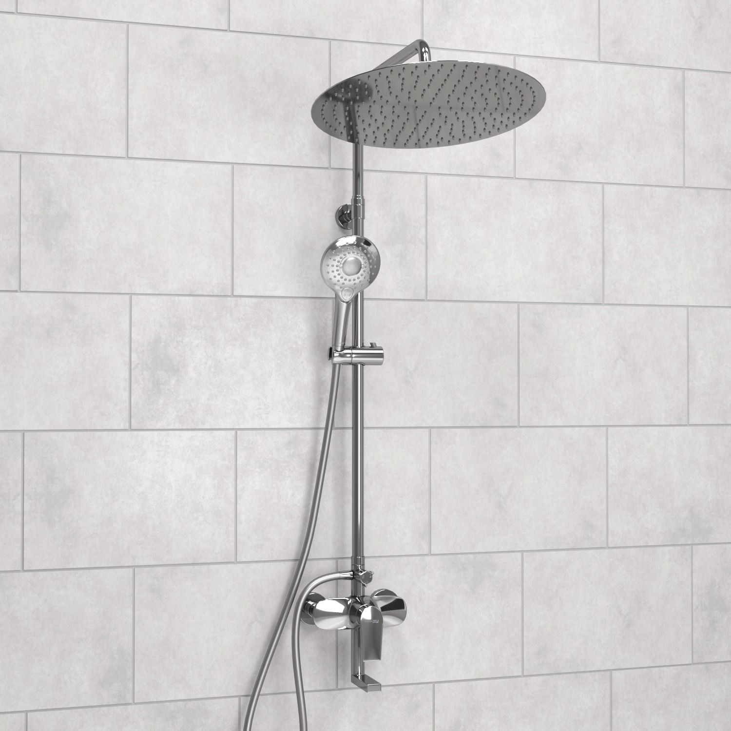 - Регулируемая по высоте стойка для душа Ø 22 мм легко настраивается под любой рост и предпочтения.