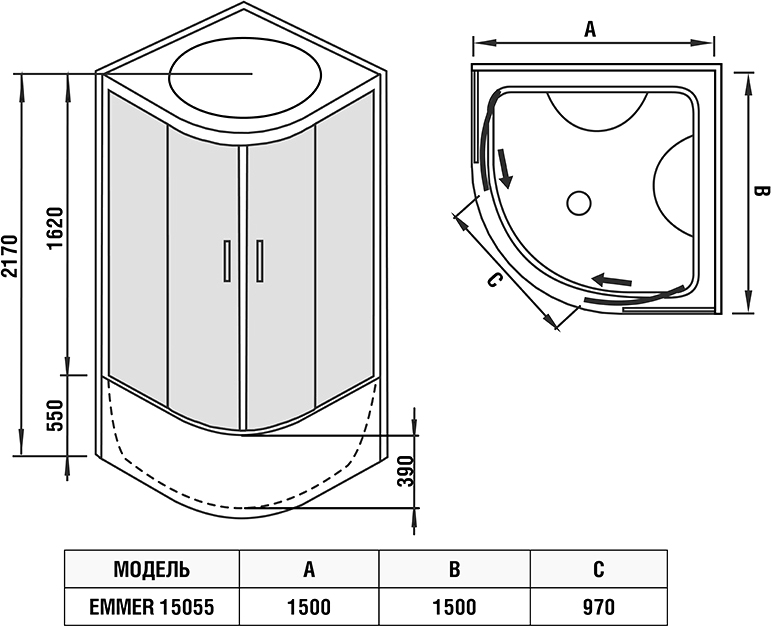 | Оснащение | душевой гарнитур, экран, сифон, мыльница, смеситель-термостат |