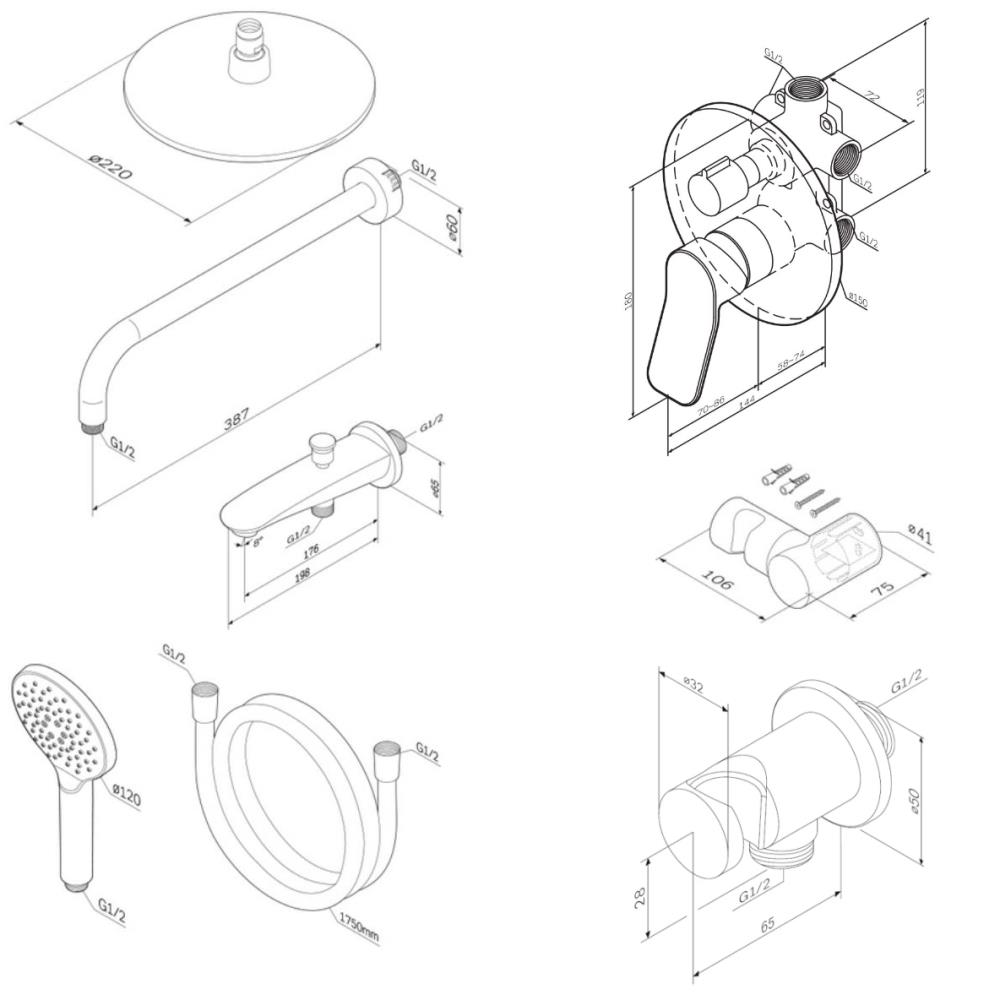 | Оснащение | душевой шланг, переключатель потоков, душевая лейка, аэратор, кронштейн для верхнего душа |
