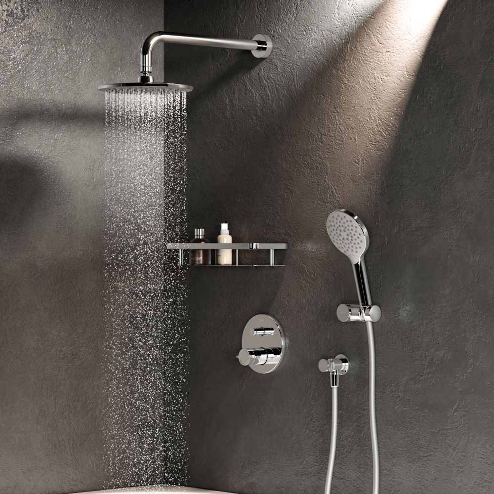 - Набор включает в себя: верхний тропический душ 22 см, ручной душ, держатель ручного душа и смеситель.