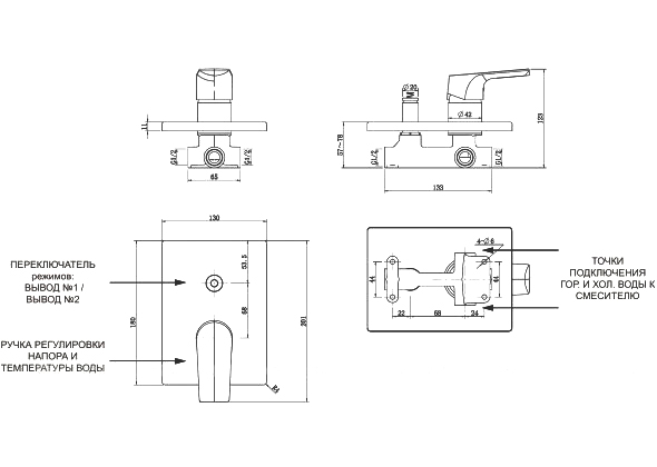 | Оснащение | душевой шланг, переключатель потоков, душевая лейка, настенный держатель |