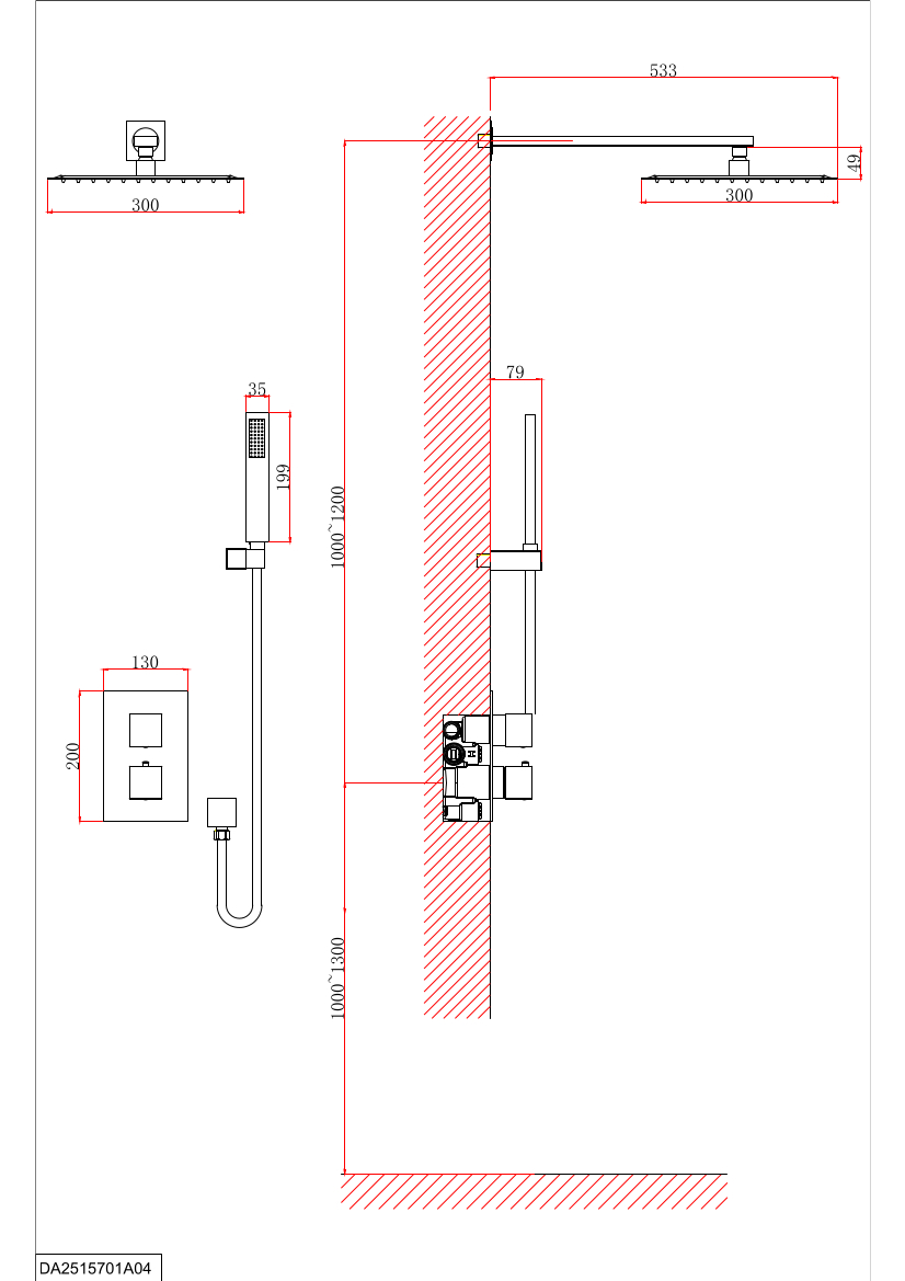 | Оснащение | душевой шланг, переключатель потоков, душевая лейка, кронштейн для верхнего душа, настенный держатель |