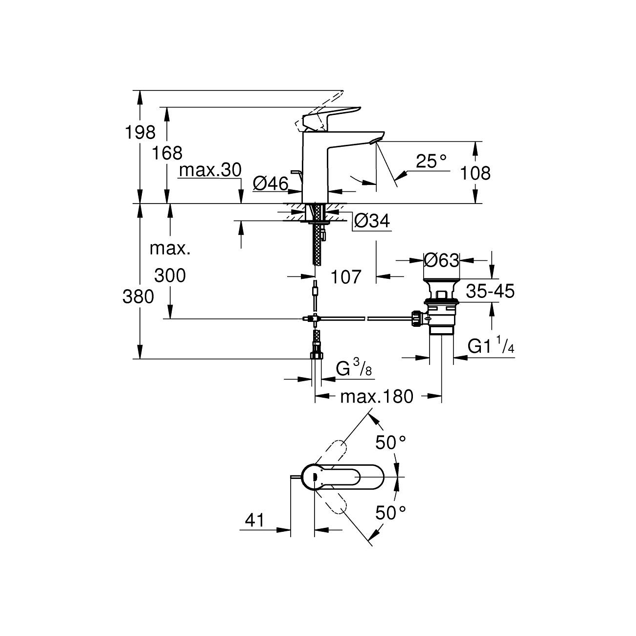- Смеситель однорычажный для раковины, M-Size (23774000) Металлический рычаг. GROHE Long-Life керамический картридж 28 мм. GROHE Long-Life Finish - стойкое долговечное покрытие. GROHE Water Saving ограничитель расхода воды 5,7 л/мин. Система быстрого монтажа. Рычажный донный клапан 1 1/4". Гибкая подводка.