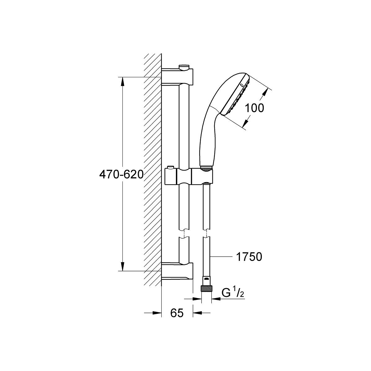 - Душевой гарнитур с 1 режимом струи (27942000) Ручной душ Vitalio Start (27940000). Душевая штанга Vitalio Universal 600 мм (27724). Душевой шланг Vitalioflex Trend 1750 мм 1/2" x 1/2" (28742). GROHE Water Saving ограничитель расхода воды 5,7 л/мин. GROHE DreamSpray превосходный поток воды. GROHE Long-Life Finish - стойкое долговечное покрытие. GROHE FastFixation (регулируемое расстояние междунастенными креплениями штанги позволяет использоватьдля монтажа уже имеющиеся отверстия в стене). SpeedClean система против известковых отложений. Внутренний охлаждающий канал для продолжительного срока службы. ShockProof силиконовое кольцо, предотвращающее повреждение поверхности при падении ручного душа. Может использоваться с проточным водонагревателем. Минимальное давление 1,0 бар. Максимальная нагрузка: 20 кг. Указанная удерживающая способность действительна только для статической (медленно прикладываемой) нагрузки и использования по назначению.