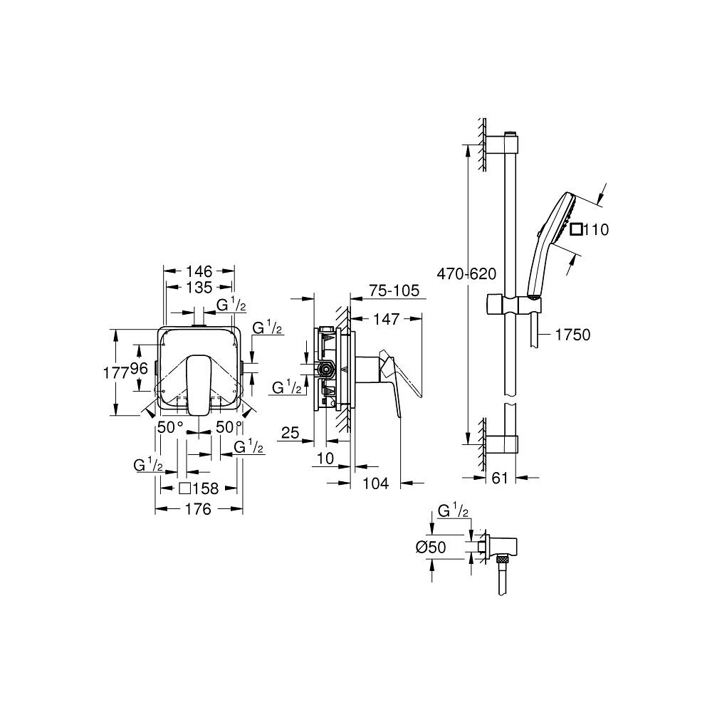 GROHE Cubeo также заботится об экологии: технология экономии воды GROHE ограничивает потребление до 7,4 л/мин (при 3 бар), не снижая производительность. В комплект входят душевая штанга длиной 600 мм с регулируемым держателем, шланг длиной 1750 мм и подлючение для душа.