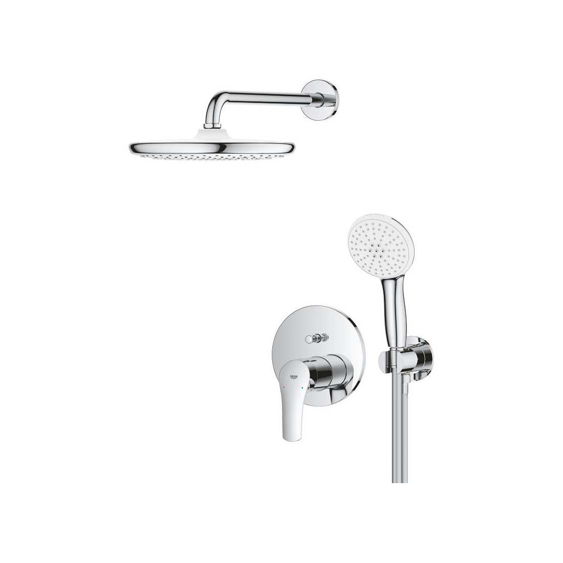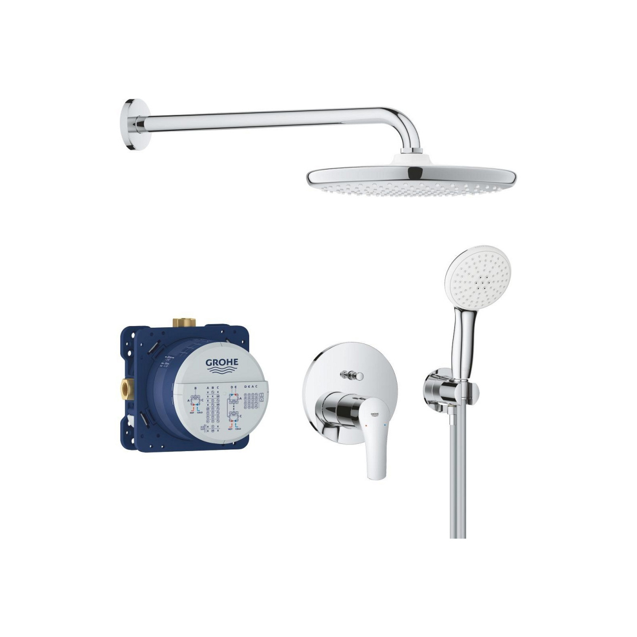 Душевая система скрытого монтажа GROHE Eurosmart, в которой есть все необходимое для идеального принятия душа в одном комплекте, мгновенно добавляет стиль и роскошь! Тонкая и элегантная однорычажная отделка Eurosmart с двухпозиционным переключателем — в паре с универсальным встроенным блоком для скрытого монтажа — имеет стильный современный вид.