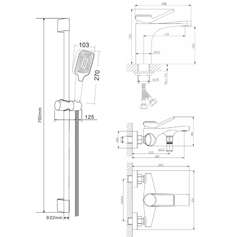 | Оснащение | душевой шланг, переключатель потоков, душевая лейка, держатель для душа, душевая штанга, аэратор, эксцентрики, крепления |