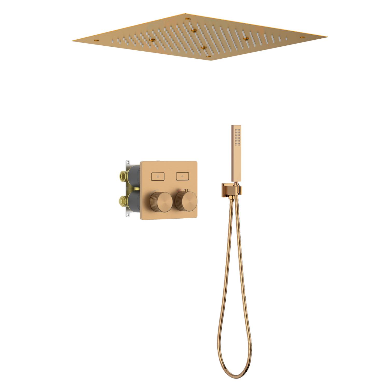 Встраиваемая душевая система с термостатом Timo Petruma 5209 относится к премиальному сегменту, предназначена для монтажа в полой или твердой стене. Термостатический картридж поддерживает стабильную температуру воды, обеспечивая максимально комфортные условия для принятия водных процедур. Встроенный потолочный душ большого размера создает имитацию проливного дождя, вода обливает человека целиком. Регулируя напор воды можно получить массажное воздействие, что очень полезно для здоровья. Основные преимущества встроенной системы: элегантный внешний вид, все коммуникации и крепления спрятаны в стену и потолок, снаружи видны только декоративные элементы. Установить встроенную систему можно в любом месте. Использовать такой смеситель очень удобно, регулировка температуры воды осуществляется ручкой термостата (расположена снизу). Режим "тропический душ" и увеличение напора осуществляется поворотом ручки дивертора (расположена сверху) влево. Для переключения в режим "ручной душ" верните ручку дивертора в исходное положение 12:00 (смеситель выключен), а затем поверните вправо. Увеличение напора воды осуществляется поворотом ручки вправо.