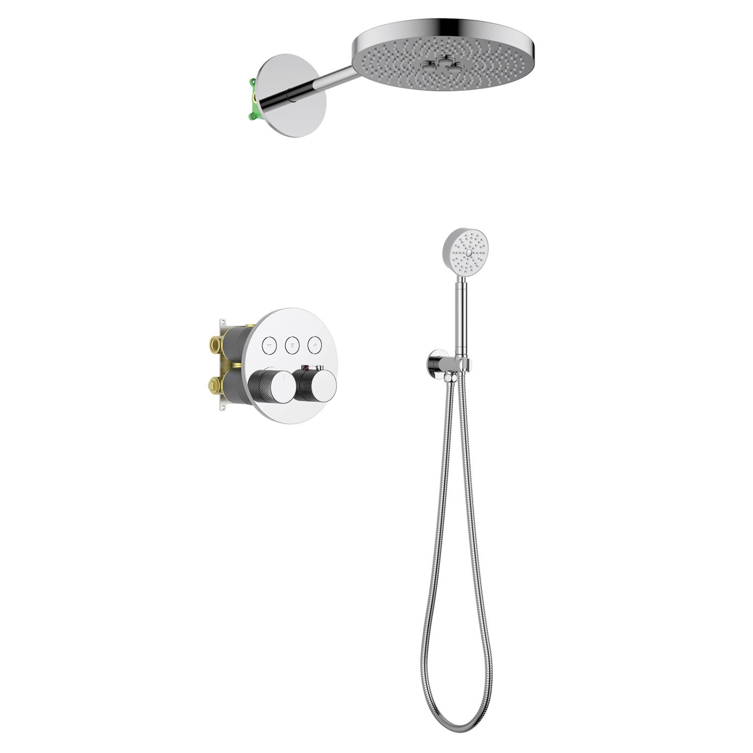 Встраиваемая душевая система Saona 2308, предназначена для монтажа в полой или твердой стене. Основные преимущества встроенной системы: коммуникации, крепления и механизмы спрятаны в стену и видны только декоративные элементы. Установить встроенную систему можно в любом месте. Использовать такой смеситель очень удобно, регулировка температуры и напора воды осуществляется одним рычагом. Регулируя напор воды в режиме "тропический душ", можно получить массажное воздействие различной интенсивности. Переключение режимов подачи воды (тропический душ, ручная лейка) осуществляется поворотом керамического дивертора.