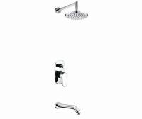 В комплекте поставки: верхний душ, кронштейн для верхнего душа, излив, смеситель (внешняя и внутренняя части).