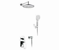 | Оснащение | душевой шланг, переключатель потоков, душевая лейка, держатель для душа, кронштейн для верхнего душа |