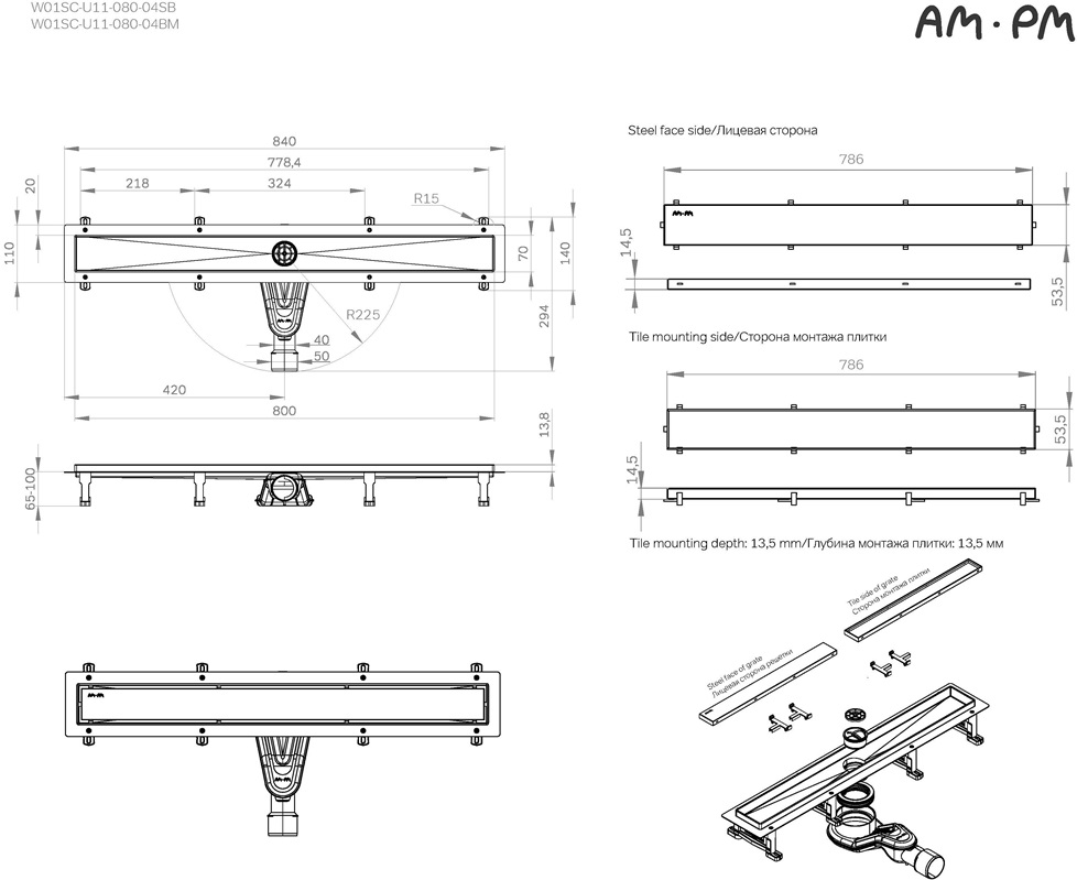 | Вид решетки | с местом под плитку, с щелью для воды |