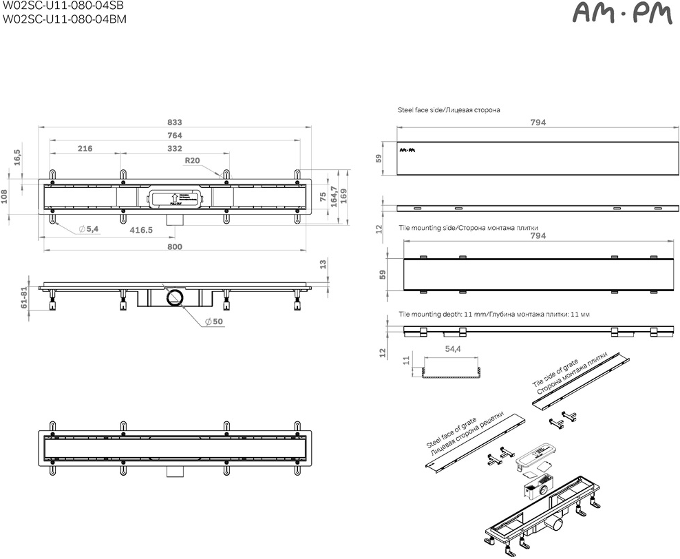 | Вид решетки | с местом под плитку, с щелью для воды |