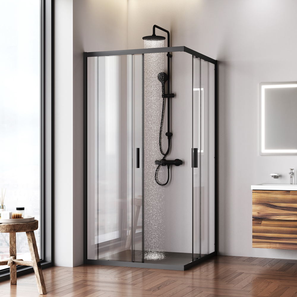 - Душевое ограждение выполнено из ударопрочного закаленного стекла. Толщина фиксированного стекла 5 мм, толщина стекла двери 6 мм. Профили ограждения изготовлены из надежного алюминия с премиальным анодированным покрытием. Анодирование обеспечивает равномерный насыщенный цвет и особенную стойкость к механическим повреждениям.