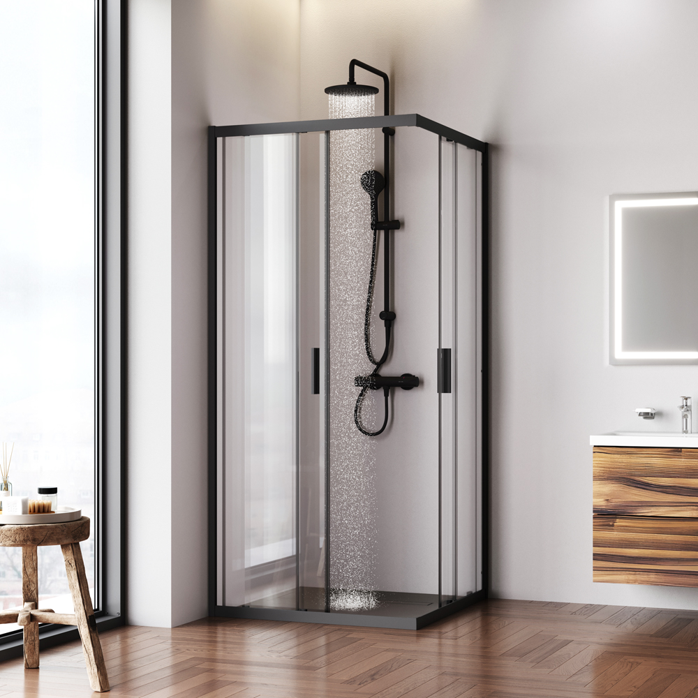 - Душевое ограждение выполнено из ударопрочного закаленного стекла. Толщина фиксированного стекла 5 мм, толщина стекла двери 6 мм. Профили ограждения изготовлены из надежного алюминия с премиальным анодированным покрытием. Анодирование обеспечивает равномерный насыщенный цвет и особенную стойкость к механическим повреждениям.