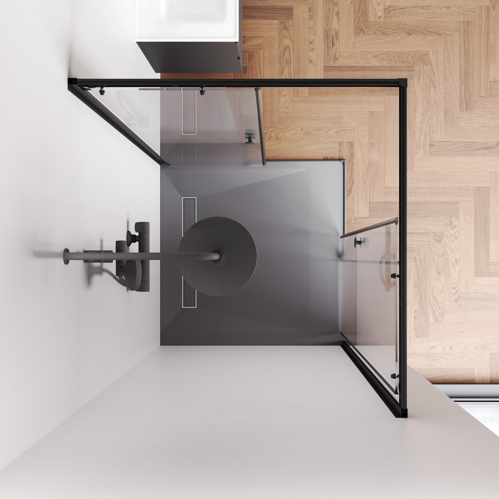 - Прочная конструкция: верхние ролики увеличенного диаметра и нижние направляющие с надежной системой захвата стекла для плавного хода двери.
