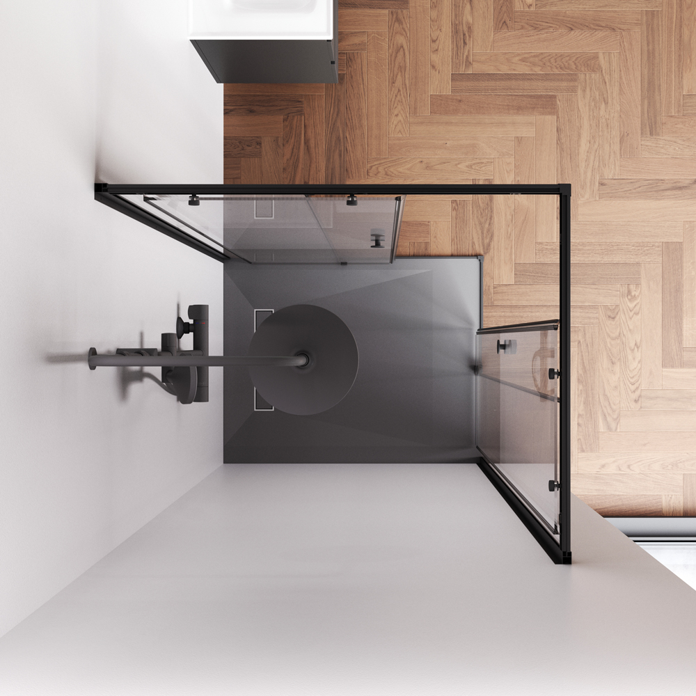 - Прочная конструкция: верхние ролики увеличенного диаметра и нижние направляющие с надежной системой захвата стекла для плавного хода двери.