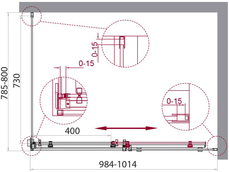 - Регулировка ширины предусмотрена за счет боковых профилей