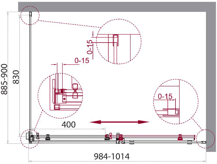 - Регулировка ширины предусмотрена за счет боковых профилей