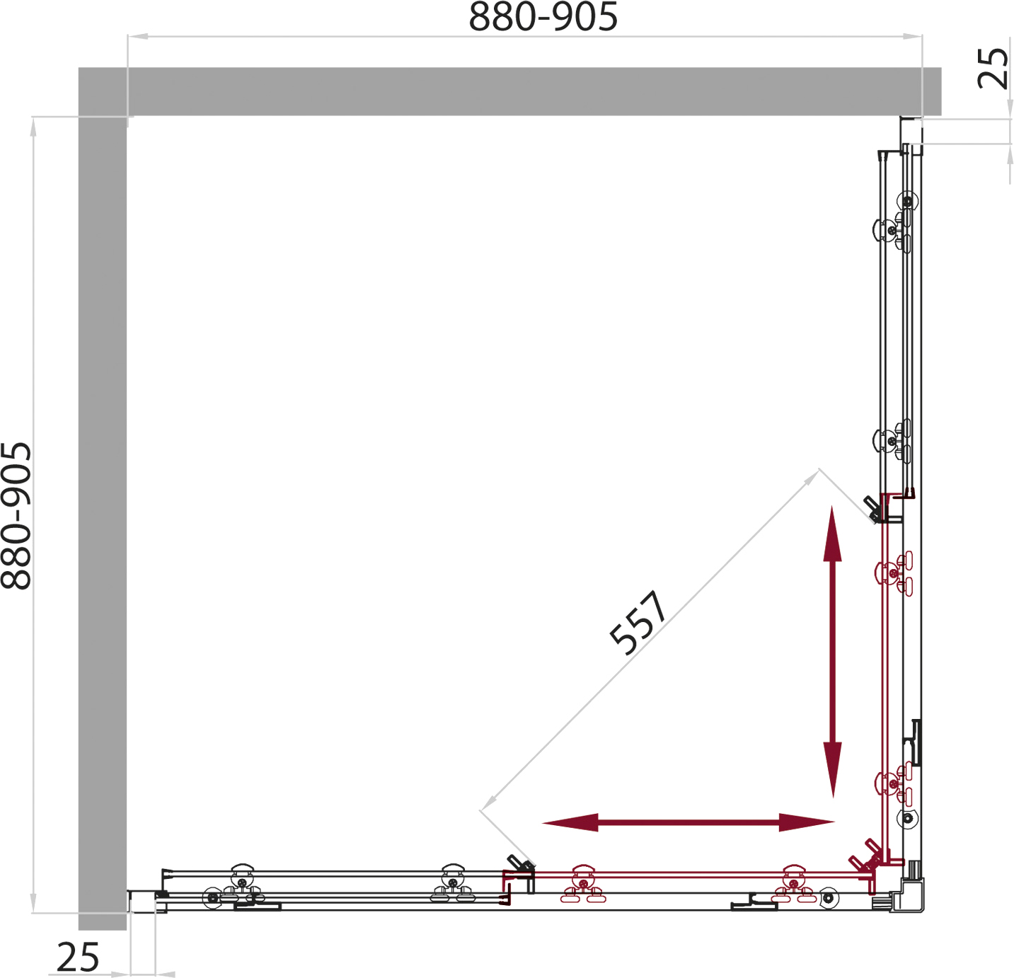 - Регулировка ширины предусмотрена за счет боковых профилей