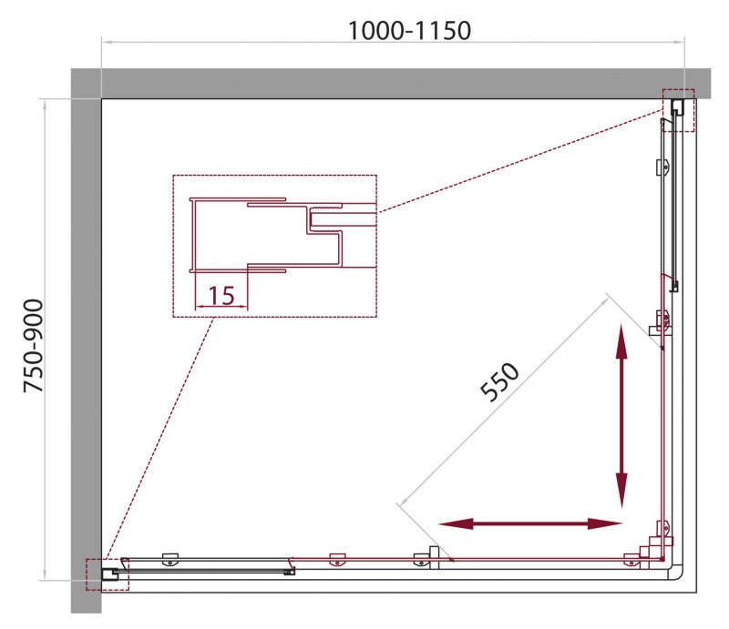 - Регулировка ширины предусмотрена за счет боковых профилей