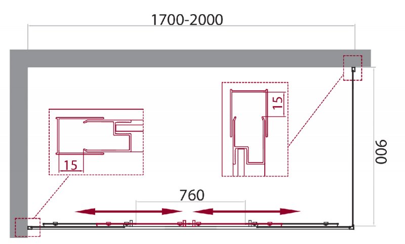 - Регулировка ширины предусмотрена за счет боковых профилей
