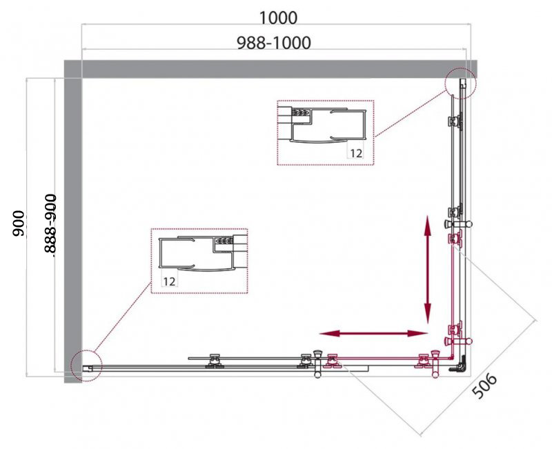 - Регулировка ширины предусмотрена за счет боковых профилей