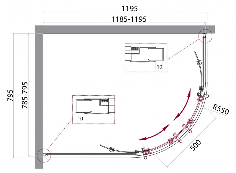 - Регулировка ширины предусмотрена за счет боковых профилей
