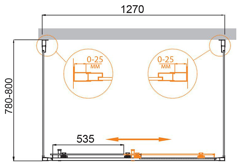 - Регулировка ширины: предусмотрена за счет боковых профилей