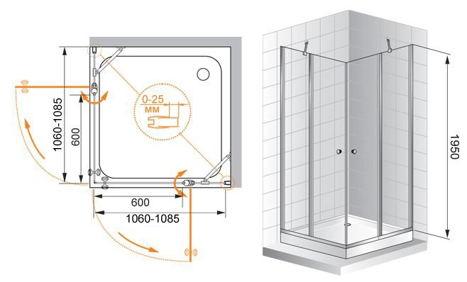 В комплекте поставки: душевой уголок, крепежные элементы, инструкция.