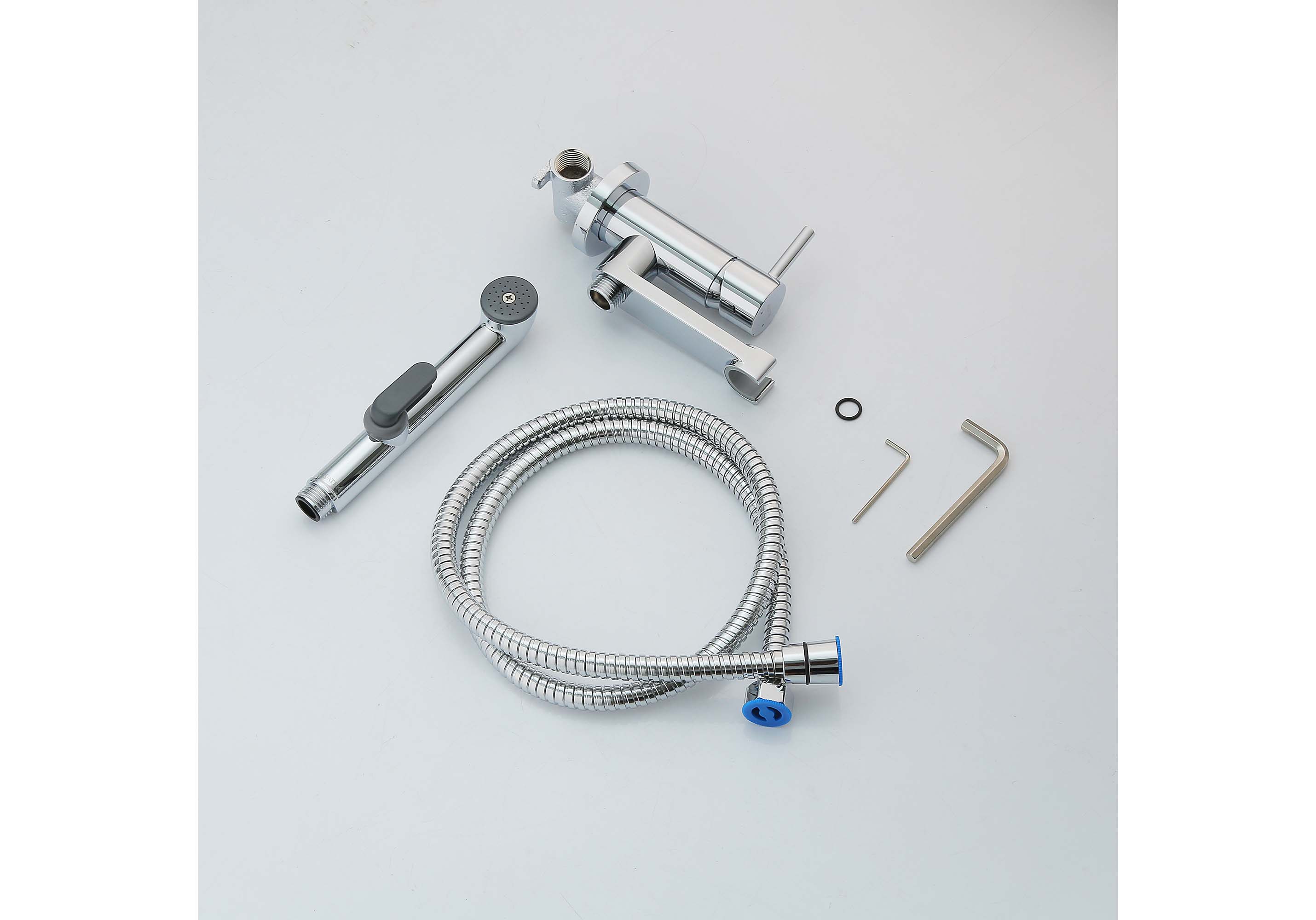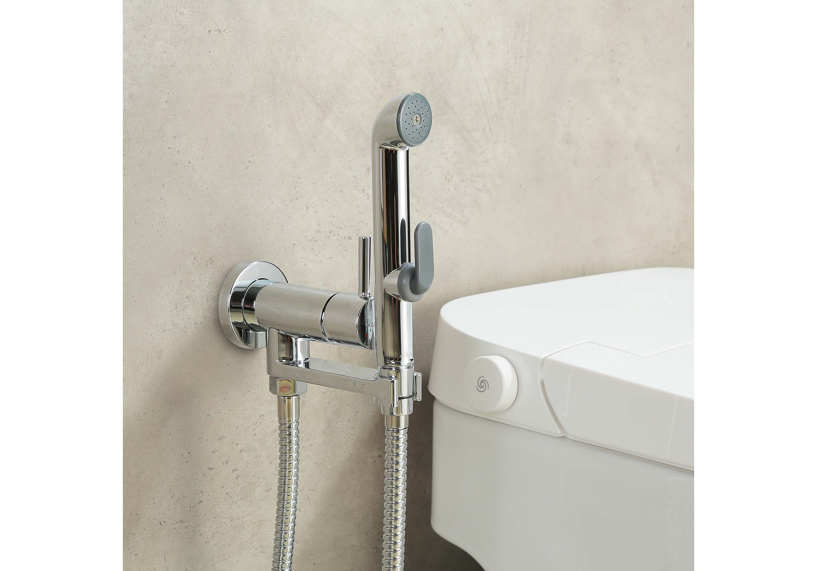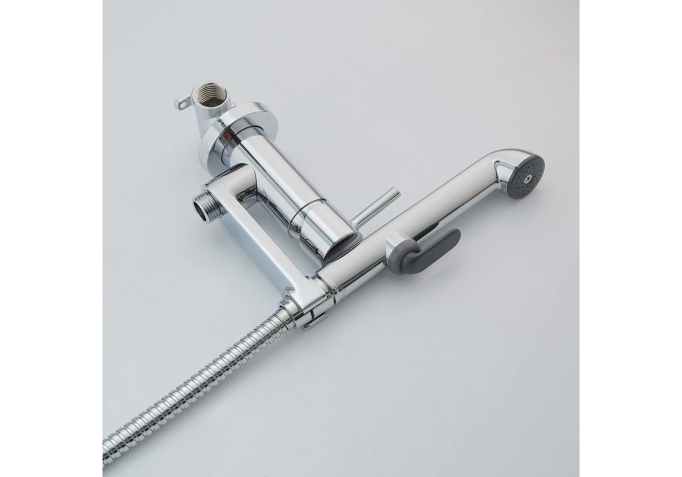 - Гигиеническая лейка оснащена нажимным механизмом для остановки потока воды