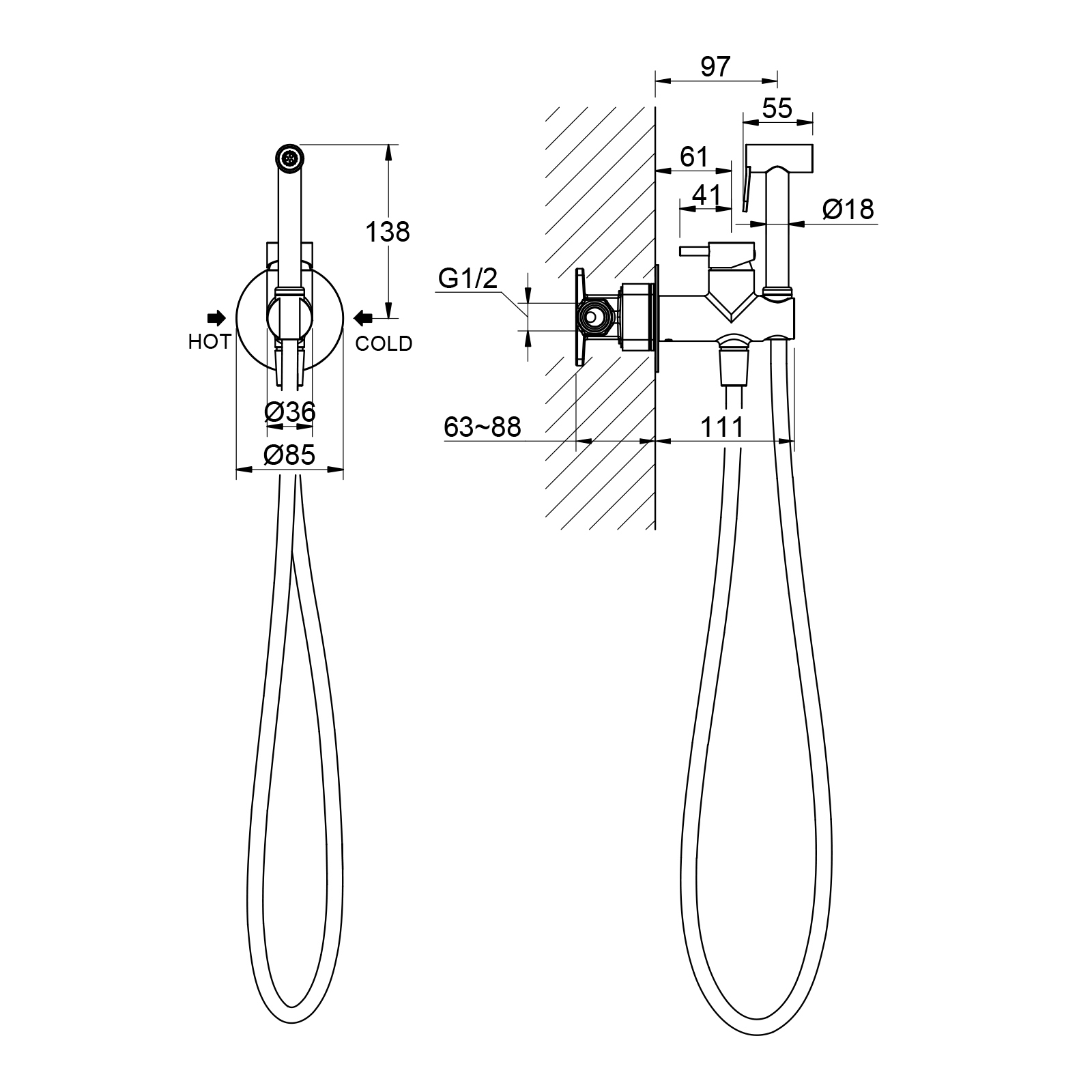 Встраиваемый смеситель с гигиеническим душем Timo Saona 2337 предназначен для монтажа в твердой или полой стене. Основной задачей данной модели является: экономия места (установка чаши для биде занимает достаточно много места и к тому же затратнее). Все коммуникации, крепления и механизмы спрятаны в стену и закрыты декоративной накладкой, снаружи находится только рычаг управления смесителем и держатель гигиенической лейки с подключеним шланга, такая модель отлично сочетается с инсталляцией для унитаза. Длины шланга 1,2 метра хватает для решения гигиенических задач. Можно также использовать например, для мытья собаки после прогулки или наполнения ведра воды и т.д. Сложностей монтажа не возникает при установке смесителя опытным сантехником. Внимательно изучите инструкцию по монтажу и эксплуатации.