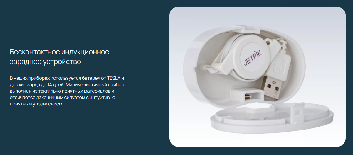 - Бесконтактное индукционное зарядное устройство. В наших приборах используется батарея от TESLA и держит заряд до 14 дней. Минималистичный прибор выполнен из тактильно приятных материалов и отличается лаконичным силуэтом с интуитивно понятным управлением.