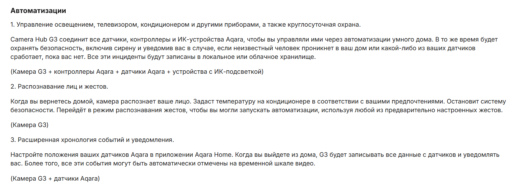 Благодаря мощному нейронному процессору G3 распознает лица и жесты. Например, вы покажете в объектив жест «OK» и запустится автоматизация. Включится кондиционер или свет. Также, распознав лицо, устройство может включить уникальную автоматизацию именно для вас.