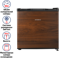 - Компактный однокамерный однодверный холодильник высотой всего 50 см с камерой охлаждения, располагающейся в верхнем углу.