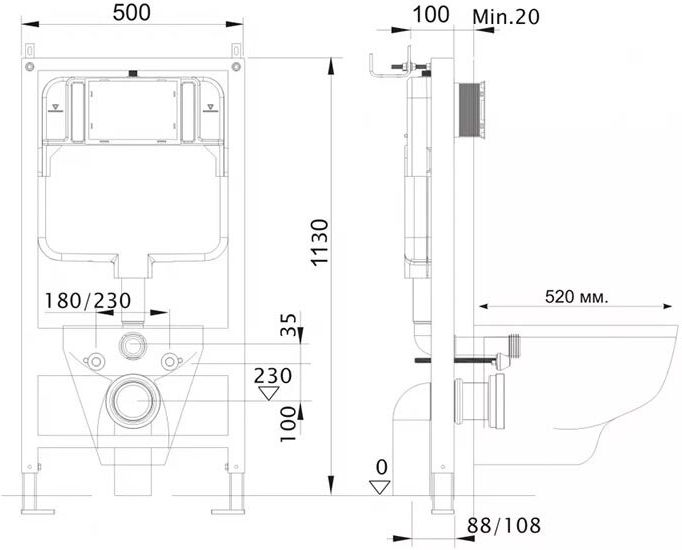 | Состав комплекта | унитаз, система инсталляции |