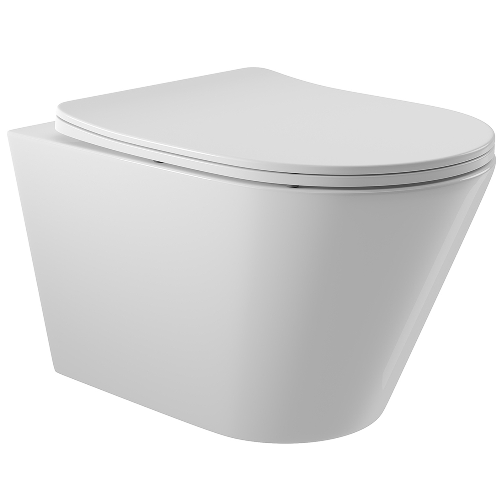 - CONE Унитаз подвесной 525*360 безободковый, сиденье с микролифтом, белый глянцевый