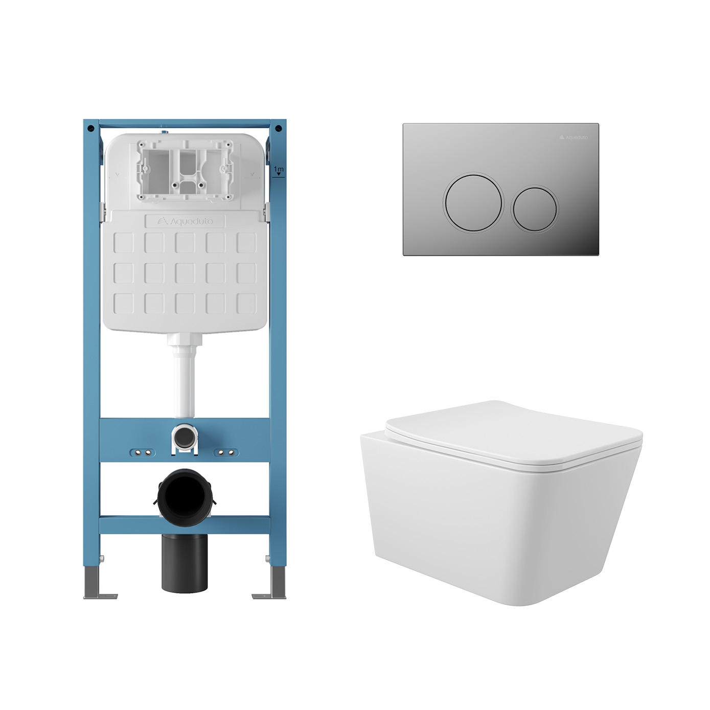 Панель смыва: Простой монтаж/демонтаж, износостойкое покрытие. Система инсталляции: Цельнолитой бачок, 2 режима смыва с регулировкой объема, подвод воды сверху, защита от конденсата, звукоизоляция, оциокованные опоры с регулировкой высоты, нагрузка до 400 кг.