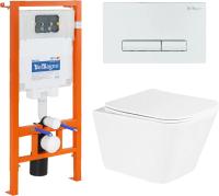 - Комплект Унитаз подвесной BelBagno Due BB3103CHR/SC безободковый, с микролифтом + Система инсталляции для унитазов BelBagno BB002-80 с кнопкой смыва BB018-GV-BI
