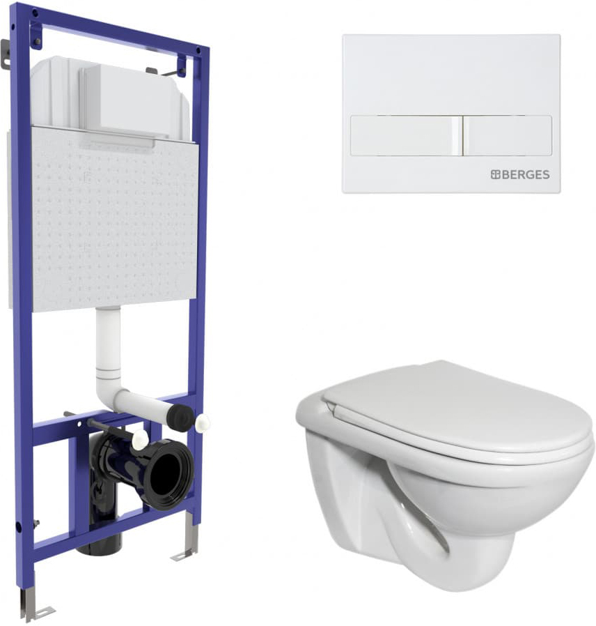 - Полный комплект BERGES для монтажа подвесного унитаза.Все крепежи для установки в комплекте.