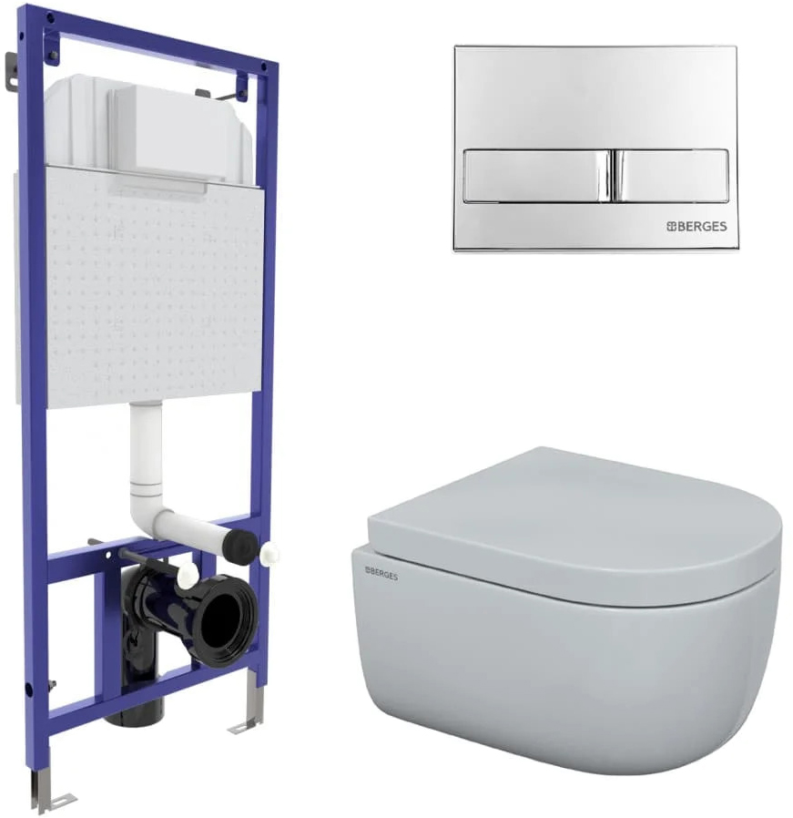 - Полный комплект BERGES для монтажа подвесного унитаза.Все крепежи для установки в комплекте.