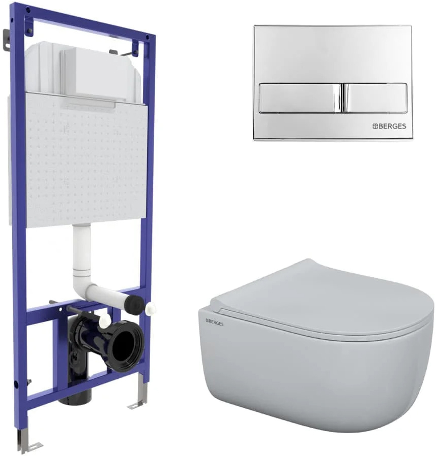 - Полный комплект BERGES для монтажа подвесного унитаза.Все крепежи для установки в комплекте.