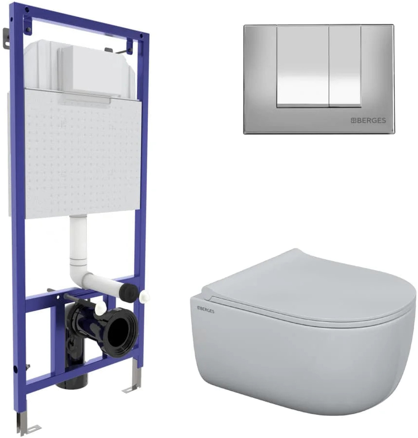 - Полный комплект BERGES для монтажа подвесного унитаза.Все крепежи для установки в комплекте.