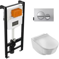 Готовое решение: безободковый подвесной унитаз Jacob Delafon Odeon Rive Gauche E21745RU-00 с крышкой-сиденьем Soft Close, в комплекте с инсталляцией и кнопкой смыва цвета глянцевый хром. Безободковая конструкция чаши унитаза обеспечивает высочайший уровень гигиены и неприхотливость в уборке отсутствием труднодоступных мест для мытья.
