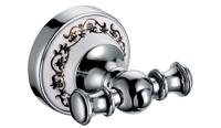 Крючок выполнен в элегантном дизайне, который будет органично смотреться в интерьере ванной в классическом стиле или ретро. Керамический декор настенных креплений белого цвета с черным изящным орнаментальным узором.